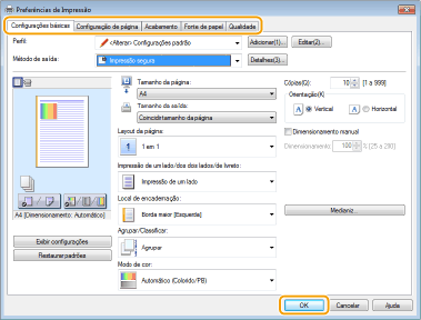 Especifique as definições de impressão conforme necessário e clique em [OK].