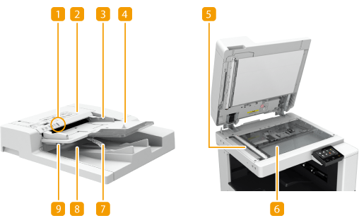 Documentele originale plasate aici sunt alimentate automat în alimentator. Când sunt încărcate două sau mai multe foi, documentele originale pot fi scanate încontinuu.