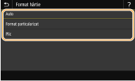 Dacă înregistraţi formatul de hârtie pe care îl utilizaţi frecvent pe butoanele <S1> – <S3>, puteţi să le apelaţi cu o singură atingere. Înregistrarea unui format de hârtie personalizat
