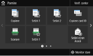 Puteţi rearanja butoanele ce sunt afişate în ecranul Pornire. În plus, puteţi personaliza ecranul Pornire pentru a facilita selectarea funcţiilor prin adăugarea butoanelor pentru comenzi rapide. Personalizarea ecranului Pornire