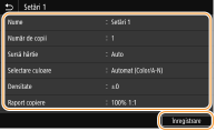 Verificaţi detaliile setărilor care urmează a fi înregistrate şi selectaţi <Înregistrare>.