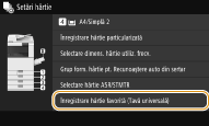 Dacă înregistraţi formatul de hârtie pe care îl utilizaţi frecvent pe butoanele <S1> – <S3>, puteţi să le apelaţi cu o singură atingere. Înregistrarea unui format de hârtie personalizat