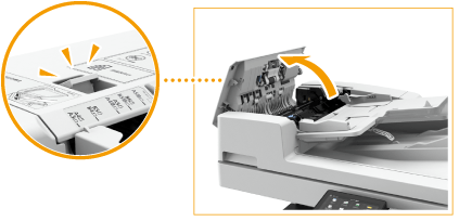 Dacă apar dungi pe documentele originale alimentate în alimentator, dacă apare murdărie pe documentele imprimate sau dacă apare un blocaj de hârtie în mod frecvent, atunci efectuaţi curăţarea alimentatorului.