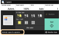 Copiile şi documentele imprimate pot fi scoase în echipamentul opţional în timpul completării capselor. Aveţi grijă la manipularea echipamentului opţional instalat pe aparat.