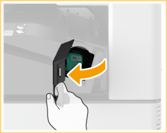 Introduceţi placa ce iese din partea din faţă a carcasei de capse în cartuşul de capse şi coborâţi carcasa de capse pentru a o plasa în cartuşul de capse.