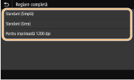 Pentru a imprima pe hârtie grea utilizând funcţia Superfină, efectuaţi mai întâi corecţia cu <Standard (Simplă)>*1, apoi cu <Standard (Grea)>*2 şi în final cu <Pentru imprimantă 1200 dpi>*2.