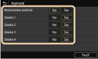Vždy špecifikujte možnosť <Zap.> aspoň pre jednu zásuvku na papier. Ak pre všetky zásuvky na papier špecifikujete možnosť <Vyp.>, nebudete môcť dokončiť postup nastavenia.