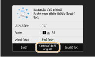 Vložte na kopírovaciu dosku ďalší originál a vyberte položku <Skenovať ďalší originál>.