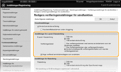 Blockerar skicka e-post och I-fax. <E-post> och <I-fax> i skanningsfunktionen kan inte längre användas.