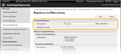Ange inställningar för [Giltig i] och [Verifiering]/[Kryptering]/[DH-grupp].