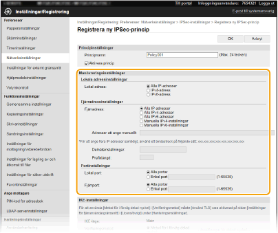 Använda IPSec med IP-adressfilterIP-adressens filterinställningar används före IPSec-principen. Ange IP-adresser för brandväggsinställningar