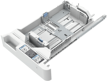 När du laddar papper med ett annat format i en papperslåda, måste du justera styrskenorna. Fylla på papper i papperslådan