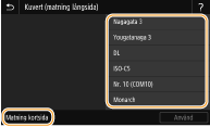 Om du ändrar kuvertens placering, tryck på <Matning kortsida> eller <Matning långsida> och välj kuverttypen.