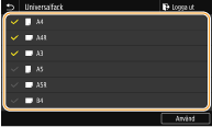 Se till att endast kryssrutorna för de pappersformat som används ofta är markerade.