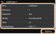 Kontrollera detaljerna i inställningarna som ska registreras och välj <Registrera>.