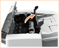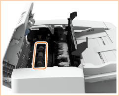 Om streck framträder på originalen som matas genom dokumentmataren, om fläckar visas på utskrifterna eller om pappersstopp inträffar ofta, ska du utföra rengöring av dokumentmataren.