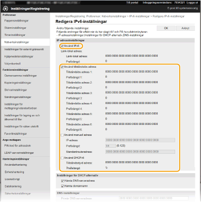 Kontrollera om inställningarna är rättKontrollera att skärmen för Fjärranvändargränssnittet kan visas på datorn genom att använda enhetens IPv6-adress. Starta Fjärranvändargränssnittet