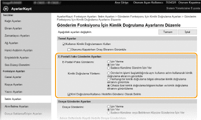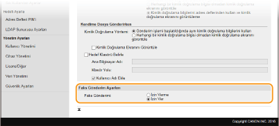 [Dosya Gönderimi] öğesinde [Sadece Kendime veya Belirlenen Klasöre Gönderime İzin Ver] belirtildiğinde