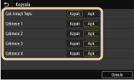 En azından bir kağıt çekmecesi için her zaman <Açık> öğesini belirtin. Tüm kağıt çekmeceleri için <Kapalı> öğesini belirtirseniz, ayar yordamını tamamlayamazsınız.