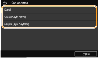 <Sırala (Sayfa Sırası)> veya <Grupla (Aynı Sayfalar)>