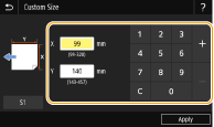 Виберіть <X> або <Y> і введіть довжину кожної сторони за допомогою цифрових клавіш.