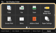 Щоб кнопки було легше використовувати, можна змінити порядок розташування кнопок на свій смак. Наприклад, спочатку можна розмістити функції, які використовуються найчастіше, або можна розташувати кнопки функцій разом із кнопками швидкого доступу для пріоритетних параметрів. Щоб було зручніше переглядати екран Home, замість кнопки можна вставити пробіл.