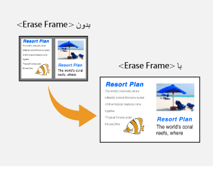 زمان کپی کردن اسناد اصلی که کوچک تر از اندازه کاغذ خروجی هستند، ممکن است خطوط قاب در اطراف لبه های تصویر کپی شده ظاهر شوند. زمان کپی کردن صفحات رویی از کتاب ضخیم، ممکن است حاشیه های تیره ظاهر شوند. <Erase Frame> به شما کمک می کند تا این خطوط قاب و حاشیه های تیره را پاک کنید.