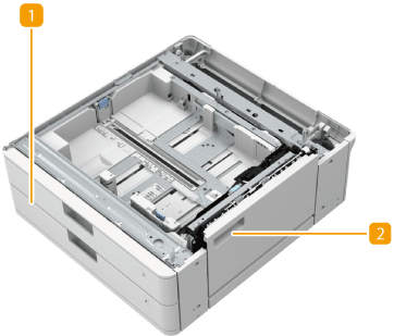 Tamaina desberdineko paper-tiradera batean papera kargatzean, gidak doitu.