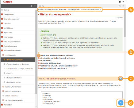 bilaketa-pantaila bistaratzeko. Gakoen bidezko bilaketak burutzeko testu-lauki bat dauka, bilatzen ari zaren orrialdea aurkitzeko.