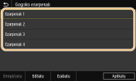 Kopiatzeko, faxak bidaltzeko eta eskaneatzeko ezarpen berak bizkor berreskuratzeko, hauek ezarpen gogoko gisa erregistratzeko aukera duzu. Etxea pantailari erregistratutako ezarpen konbinazioak lasterbide-botoi gisa gehitzeko aukera duzu.