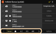 Sarritan erabilitako fax/eskaneatze hartzaileak helbide liburuan erregistra ditzakezu, hauek behar dituzunean erraz aurkitzeko (Helbide liburuan hartzaileak erregistratzea). Hartzaileak alfabetikoki bila daitezke, helbide liburuaren zerrendetan edo hiru digituko zenbakiak sartuz (markatze-zenbaki kodeatuak). Halaber, hartzaileak azkarrago adieraz ditzakezu hurrengo funtzioak erabiliz.