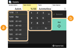 Kopiak handitu edo txikitu ditzakezu aurrehautatutako kopia-erlazio bat erabiliz, adibidez, <A5->A4>, edo kopia-erlazio pertsonalizatu bat ezarriz %1eko gehikuntzekin.