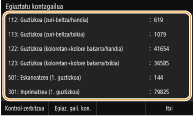 Kolorezko kopientzako eta kopia zuri-beltzetarako erabilitako orrialde kopuruaren guztizko indibidualak begiratzeko aukera duzu. Guztizko kopuru hauek ordenagailuetatik egindako kopia eta inprimatutako dokumentuez gain faxak, txostenak, zerrendak barne dituzte.