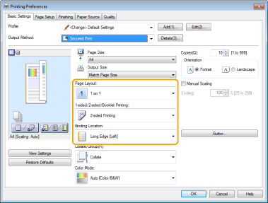 [Page Order] [1-sided/2-sided/Booklet Printing] [Binding Location].