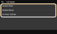 כדי להדפיס על נייר כבד באמצעות פונקציית Superfine, תחילה בצע תיקון באמצעות <Standard (Plain)>*1, לאחר מכן באמצעות <Standard (Heavy)>*2, ולבסוף באמצעות <For Printer 1200 dpi>*2.