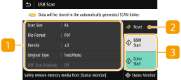 מסך התכונות הבסיסיות לסריקה ל-USB