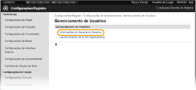 Clique em [Configurações/Registro] na página do portal.