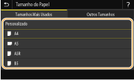 ![]() ![]() Se registar o tamanho de papel que utiliza frequentemente nos botões <S1> a <S3>, pode aceder-lhes com um só toque. Registar um tamanho de papel personalizado