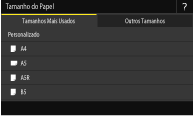 ![]() ![]() Se registar o tamanho de papel que utiliza frequentemente nos botões <S1> a <S3>, pode aceder-lhes com um só toque. Registar um tamanho de papel personalizado