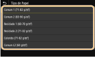 Se o ecrã mostrado acima não aparecer quando o papel é colocadoSe colocar sempre o mesmo papel no tabuleiro multifunções, pode ignorar as operações de definição do papel gravando o tamanho e o tipo do papel como predefinição. No entanto, o ecrã mostrado acima não aparece se registar a predefinição. Para ver o ecrã, selecione <Especificar ao Colocar Papel> (Registar predefinições de papel para o tabuleiro multifunções).