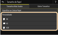 ![]() ![]() Se registar o tamanho de papel que utiliza frequentemente nos botões <S1> a <S3>, pode aceder-lhes com um só toque. Registar um tamanho de papel personalizado
