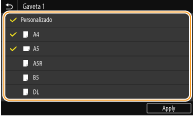 Limpe as caixas de verificação dos tamanhos de papel que pretende ocultar.