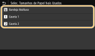 Pode certificar-se de que apenas os tamanhos de papel mais utilizados são apresentados no separador <Tamanhos Mais Usados> do ecrã de seleção da definição de tamanho do papel.