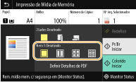![]() No caso de um ficheiro PDF, pode imprimir 9 ou 16 páginas de dados de imagem num lado de uma folha de papel utilizando <N em 1> em <Definir Detalhes PDF>.