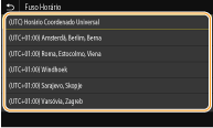 Defina <Fuso Horário> antes de definir a data e a hora atuais. Se a definição <Fuso Horário> for alterada posteriormente, a data e a hora atuais também são alteradas em conformidade.