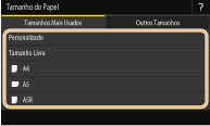 ![]() ![]() Se registar o tamanho de papel que utiliza frequentemente nos botões <S1> a <S3>, pode aceder-lhes com um só toque. Registar um tamanho de papel personalizado