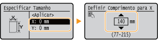 introduza a largura do papel <Y> introduza o comprimento do papel ![]() ![]() |