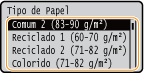 Se precisar de alterar frequentemente o papel colocado, defina a opção <Livre>; isso reduzirá o número de passos necessários para alterar a definição de cada vez. No entanto, tenha em atenção que esta definição permite que a máquina imprima mesmo que a definição de tipo de papel no controlador de impressora não corresponda ao tipo de papel que está efetivamente colocado na máquina.