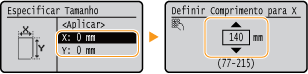 Especifique o comprimento do lado <X> e do lado <Y>.