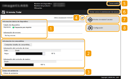 Al iniciar sesión en la IU remota aparece la siguiente página del Portal. En esta sección se describen los elementos que aparecen en la página del Portal y las operaciones básicas.
